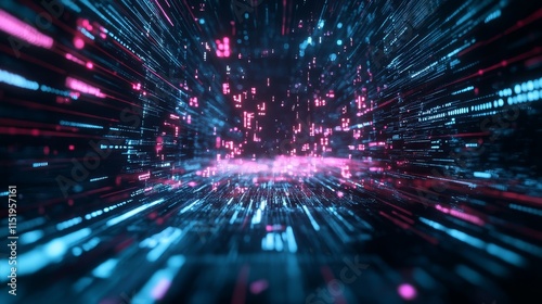 Obraz premium Futuristic data flow with explosion effect, sci-fi neon glowing rays in motion