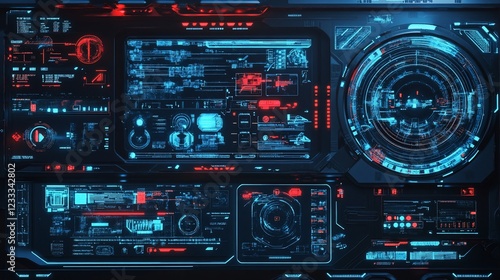 © @adha, Obraz premium Futuristic Data Interface with Holographic Displays and Cybernetic Design Elements
