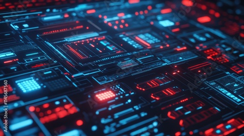 Obraz premium Futuristic Data Interface with Neon Lights Representing Robotic Process...