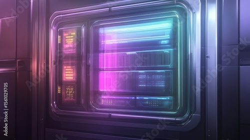 Obraz premium Futuristic Data Server with Holographic Neon Elements and Glowing Design