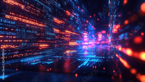 © ANUAR, Obraz premium Futuristic Data Stream in Abstract Digital Environment with Bright Lights and Vibrant Colors Evoking Technology and Innovation
