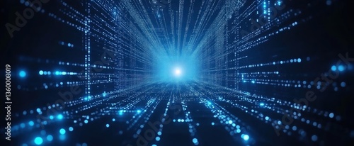 Fototapeta premium Futuristic data stream tunnel with glowing light emitting particles