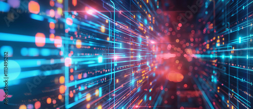 Fototapeta premium Futuristic Data Stream, vibrant tunnel of digital information flows through cyberspace.