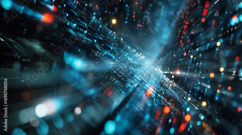 © Harry, Naklejka premium Futuristic data stream with abstract technology, showing a complex connection and digital information highway across vast networks.