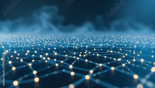 © AMIRUN, Obraz premium Futuristic Data Technology Background with Glowing Dots and Lines
