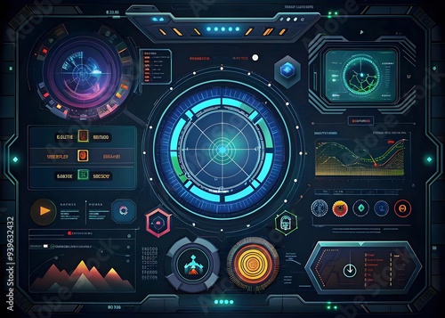 © Rostislav Bouda, Obraz premium Futuristic Data Visualization Dashboard Interface Control System Design Elements
