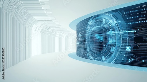 © artzone, Obraz premium Futuristic Data Visualization in Abstract White Hallway