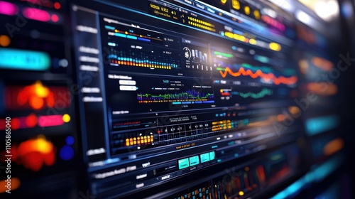Fototapeta premium Futuristic Data Visualization Interface with Charts and Graphs Display
