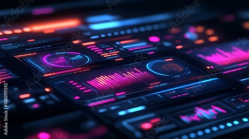 Obraz premium Futuristic data visualization interface with vibrant graphs and charts