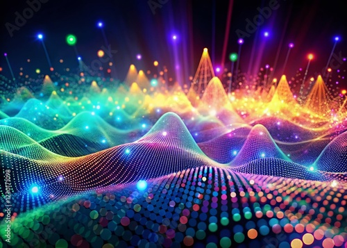 Fototapeta premium Futuristic Data Visualization Landscape: Abstract Sound Waves & Dots Background