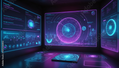 Fototapeta premium Futuristic Data Visualization Room with Interactive Holographic Technology
