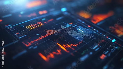 Obraz premium Futuristic Data Visualization with Graphs and Analytical Interfaces