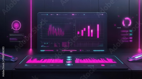 Obraz premium Futuristic Data Visualization with Neon Pink Elements and Graphs