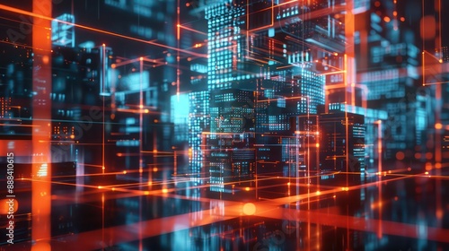 © Salman, Fototapeta premium futuristic depiction of a corporate restructuring process, visualized as a complex digital transformation
