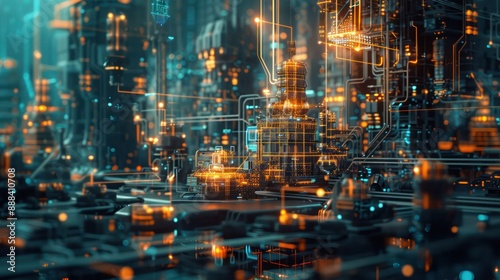 © Salman, Fototapeta premium futuristic depiction of a corporate restructuring process, visualized as a complex digital transformation