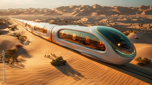 Obraz premium Futuristic Desert Train - Generative AI
