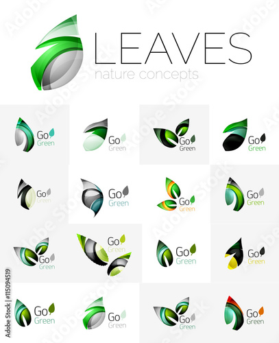 © antishock, Obraz premium Futuristic design eco leaf logo set