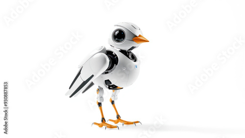 Fototapeta premium futuristic design, mechanical bird, A cute robot bird standing on a white background.