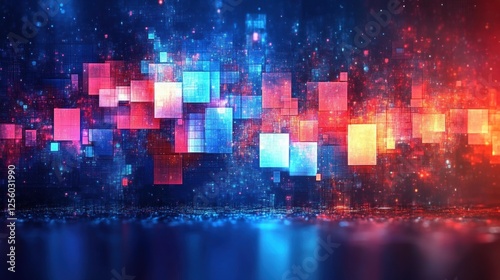 Obraz premium Futuristic digital abstract art with vibrant geometric shapes and glowing particles