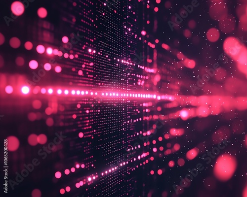 © Thanaseth, Obraz premium Futuristic digital abstract background showcasing glowing red binary data particles