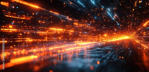 Fototapeta premium Futuristic digital abstract background with glowing orange lines and...