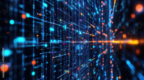 Fototapeta premium Futuristic Digital Background Featuring Glowing Data Streams, Circuit...
