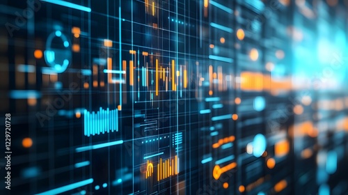Obraz premium Futuristic digital background showcasing complex data visualizations in...