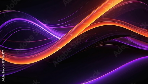 © sitifatimah, Fototapeta premium Futuristic digital background with glowing orange and violet wave lights