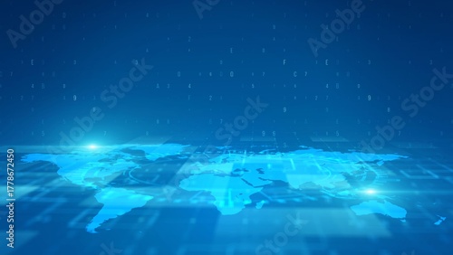 Fototapeta premium Futuristic Digital Blue World Map with Binary Code Overlay