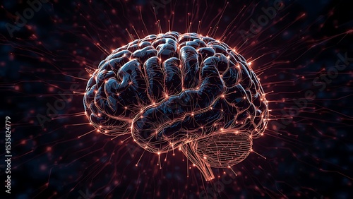 Fototapeta premium Futuristic digital brain made of particles and glowing energy lines...