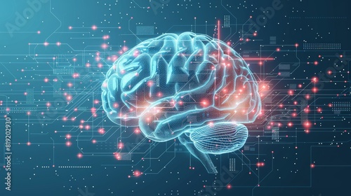 Fototapeta premium Futuristic Digital Brain Visualization Depicting Neural Connections and...