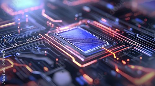 Obraz premium Futuristic digital circuit board design featuring central processing unit...