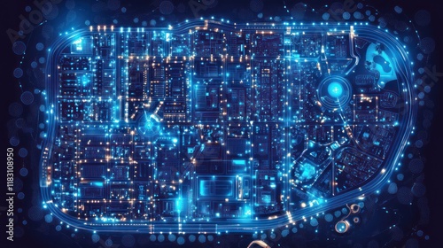 Obraz premium Futuristic digital circuit board glowing with blue light.