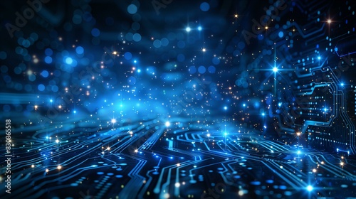 Fototapeta premium Futuristic Digital Circuit Board with Sparkling Lights