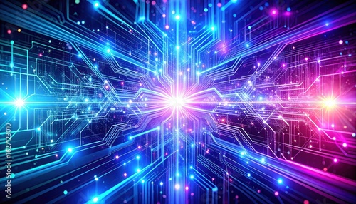 Obraz premium Futuristic Digital Circuit with Glowing Lights