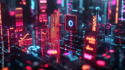 Fototapeta premium Futuristic digital city data streams flowing, glowing, network background,...