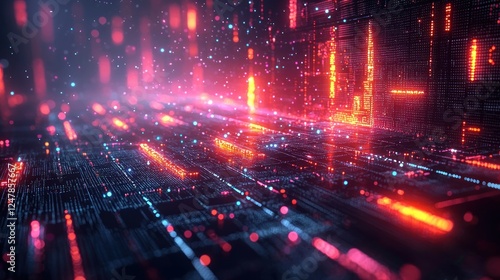 © mlangsen, Fototapeta premium Futuristic digital city glowing at night, technology background