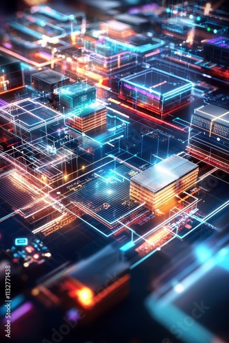 © Natthawadee, Obraz premium Futuristic Digital Cityscape.