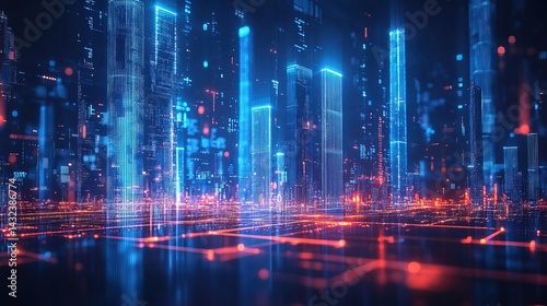© MochSjamsul, Fototapeta premium Futuristic Digital Cityscape