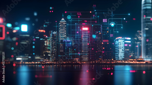© predator, Naklejka premium Futuristic Digital Cityscape At Night