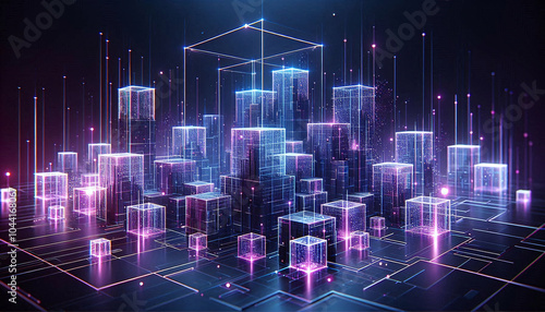 Fototapeta premium Futuristic Digital Cityscape with 3D Data Blocks