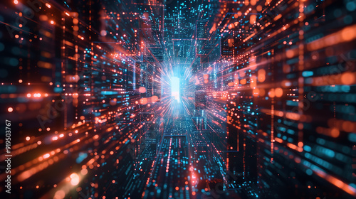 © zj, Obraz premium Futuristic Digital Cityscape with Data Streams