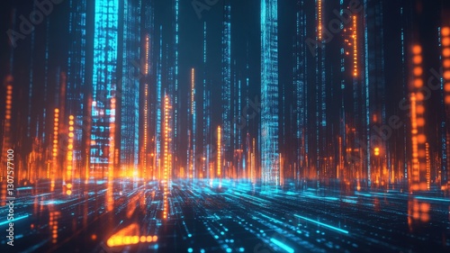 Fototapeta premium Futuristic digital cityscape with neon lights in a virtual environment. Big data and machine learning