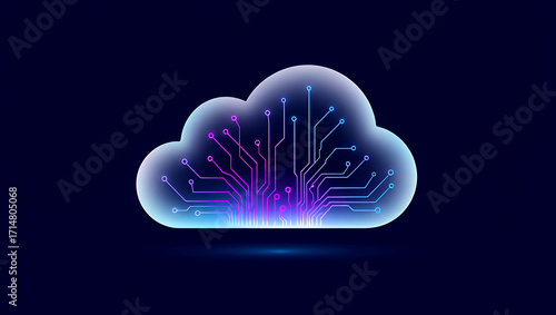 © Irvan, Obraz premium Futuristic digital cloud computing concept with a luminous circuit board pattern inside the cloud icon.
