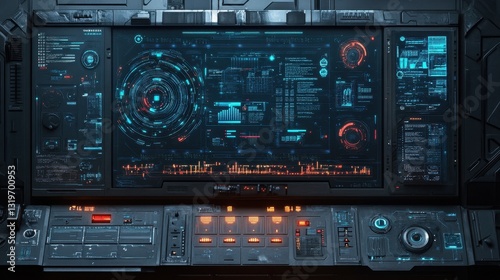 Fototapeta premium Futuristic digital control panel with interactive holographic interface display