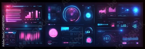 Obraz premium Futuristic digital dashboard displaying data analytics and visualizations in vibrant colors. Generative AI