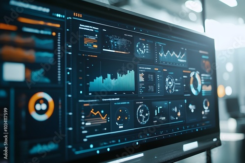 Obraz premium Futuristic Digital Dashboard Displaying Data and Analytics