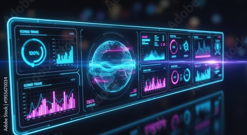 Obraz premium Futuristic Digital Dashboard Displaying Data Visualization.