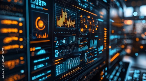 Obraz premium Futuristic digital dashboard displaying graphs, charts, and data analytics on...
