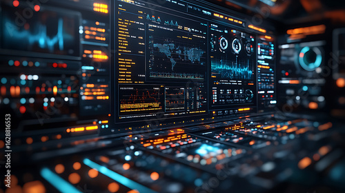 © Nur Rohman Rizki, Obraz premium Futuristic Digital Dashboard Interface Global Data Visualization and Control Panel